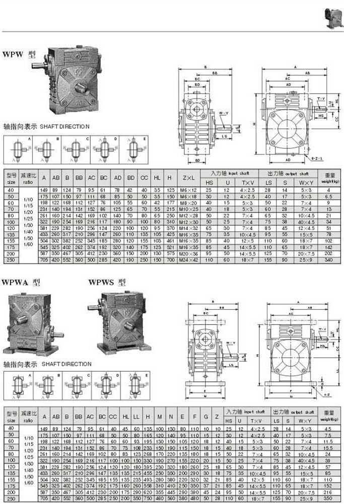 WPW,WPWA,WPWS型型號參數(shù)圖表